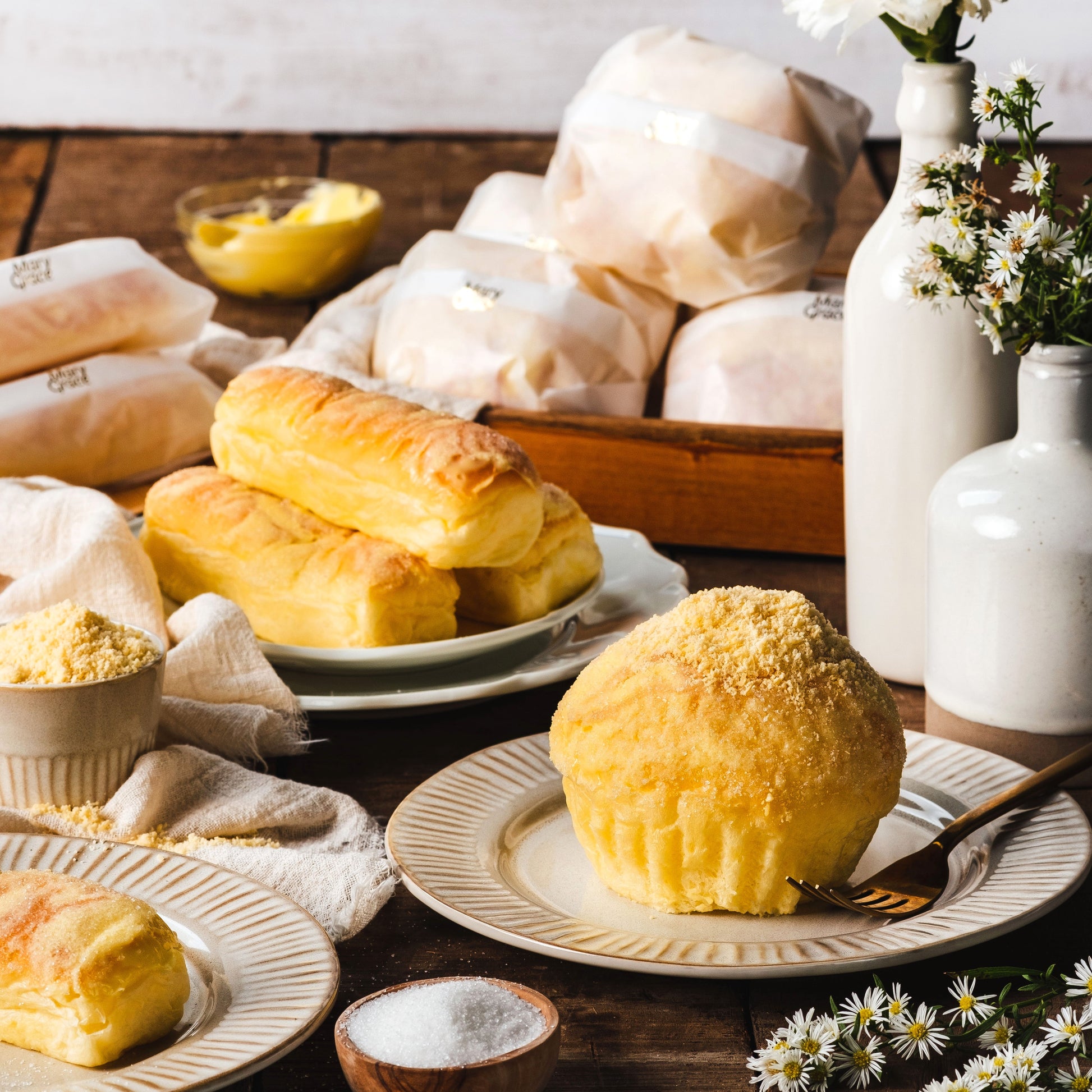 Our fluffy soft Ensaymadas are crowned with premium aged queso de bola (Edam cheese) from Holland, while our Cheese Rolls melt in the mouth with a velvety, cheesy center.